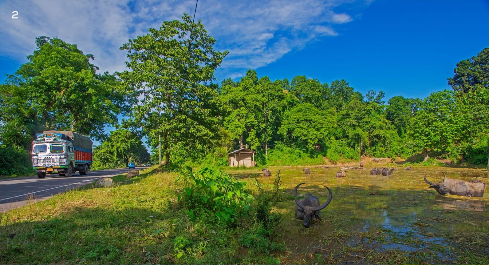I was five when my parents moved to Kaziranga in Assam. It was mid-June 2014, and the annual flooding of the park was at its peak. While the park was inundated, most animals had to temporarily head south beyond the national highway to access the Karbi hills. Signs saying “Animal Corridor, Drive Slow” could be seen where animals crossed the highway (NH37) and wild animals waited along the highway to find safe passage through. I remember the intensity of the rain and the darkness that surrounded our car as we passed through the animal corridor. We saw elephants hurriedly crossing the road in front of our car. A herd of deer hid behind the bush beside NH37, waiting to cross. NH37 is the lifeline of Northeast India, strategically critical for trade, transport, and access.