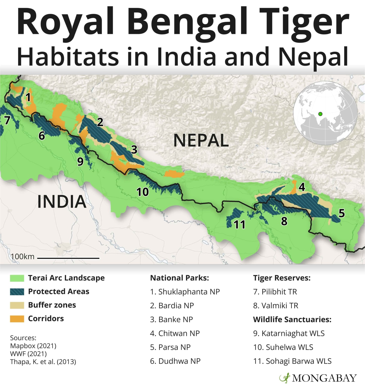 These corridors connect key tiger habitats such Pilibhit in India with Shuklaphanta in Nepal; Dudhwa with various community forests in Nepal; and Katerniaghat with Bardiya National Park, says Pranav Chanchani, national lead for tiger conservation at WWF-India.