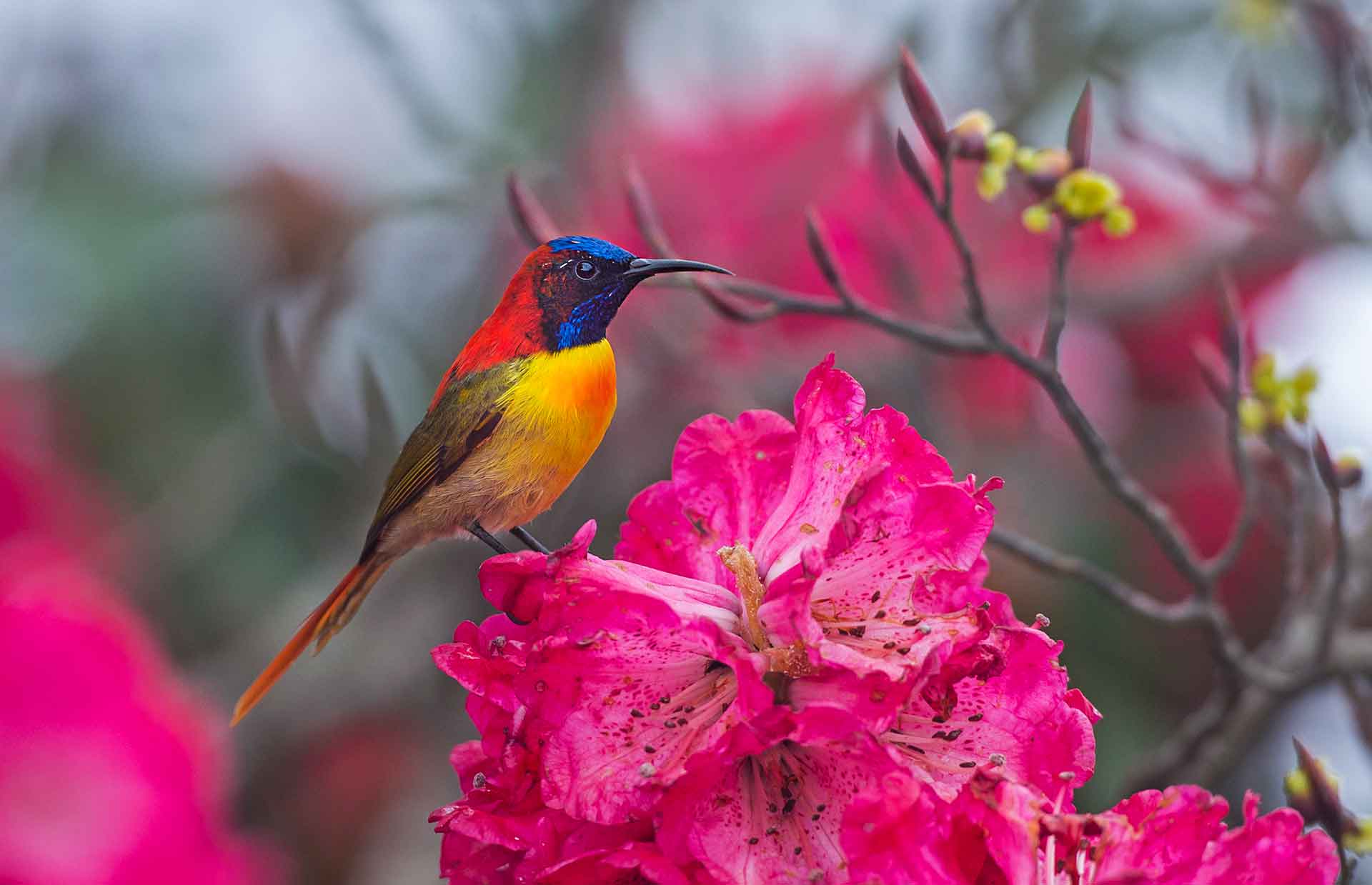 The 18 species of rhododendron recorded in Singalila National Park offer a feast not just for sunbirds but a whole assembly of avians unique to the landscape. With more than 350 bird species recorded here, including some rare and difficult to spot, this popular destination in the Eastern Himalayas is highly sought by birdwatchers.