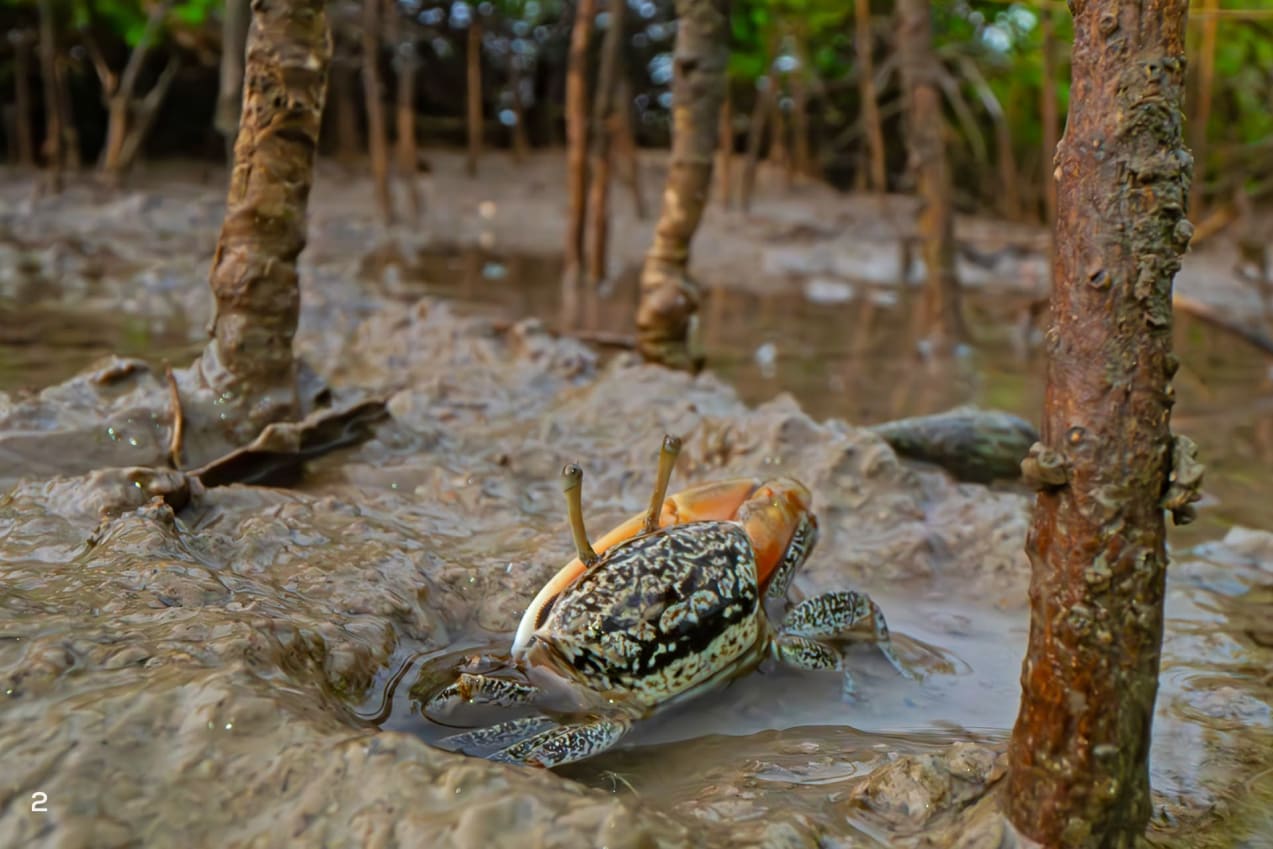 Cover image: The mangrove-filled waters around Vaippar are full of life. Inside the mangrove pools, fish, shrimp and snails roam underwater through algae tangles. On the surface of the water, between fallen leaves and emergent pneumatophores, wolf spiders walk on the water in search of a meal. Photo: Samuel John