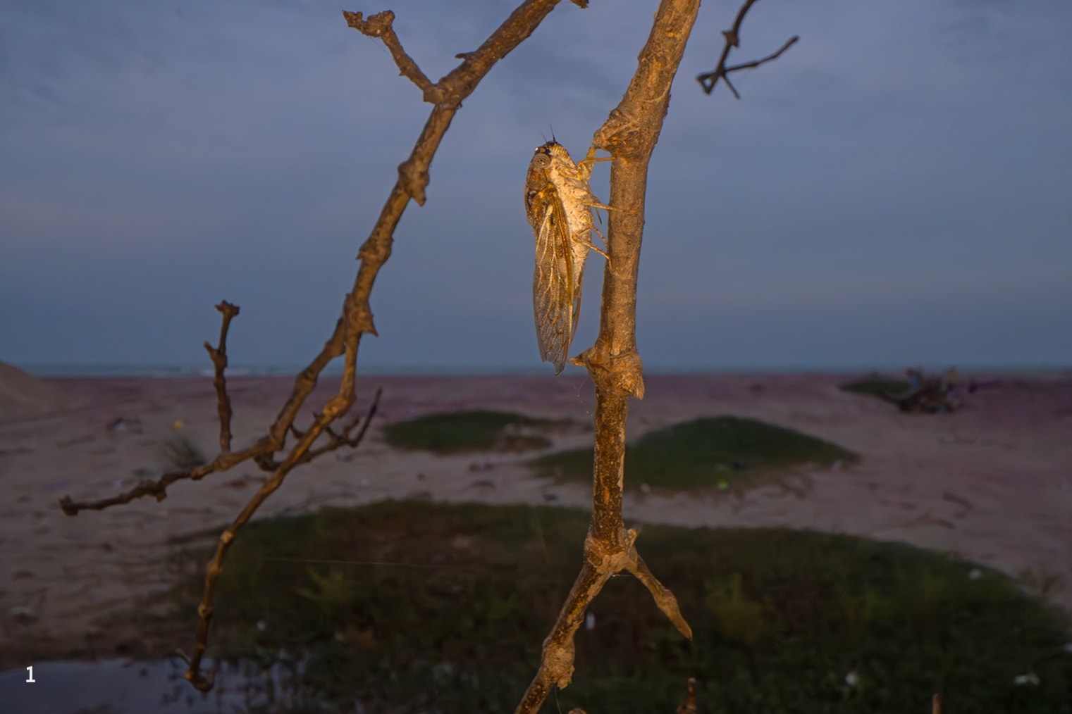 If the fragrance of flowers and heady smells of the soil were a prominent sensory feature of the mangroves during the day, sound took centre stage at dusk. With the fading light, a rhythmic cacophony would start from the mangroves. From only a few feet, and at times, a few inches away, cicadas would drum their tymbals until I could barely hear my own thoughts. Eventually, darkness engulfed the mangroves and with it, the cicadas gradually fell silent. Suddenly, the air was filled only with the whooshing white noise of strong winds.