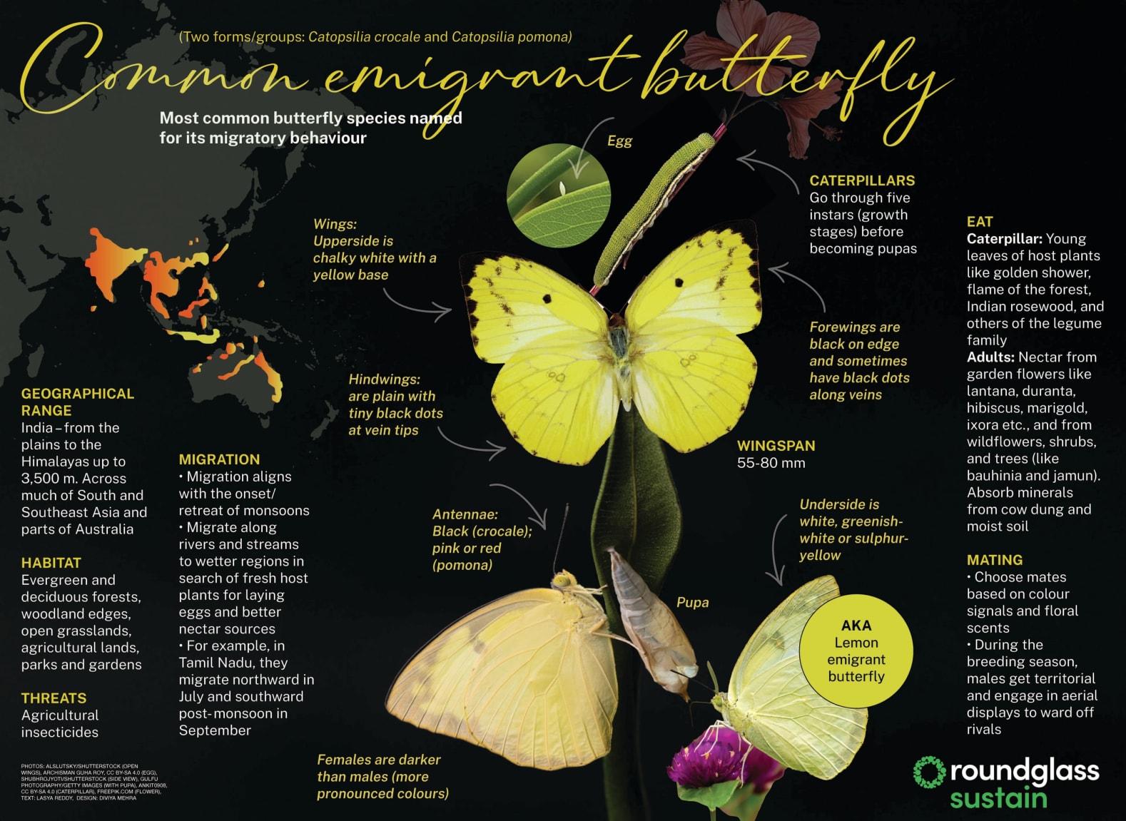 The two forms of the common emigrant butterfly are known as Catopsilia crocale