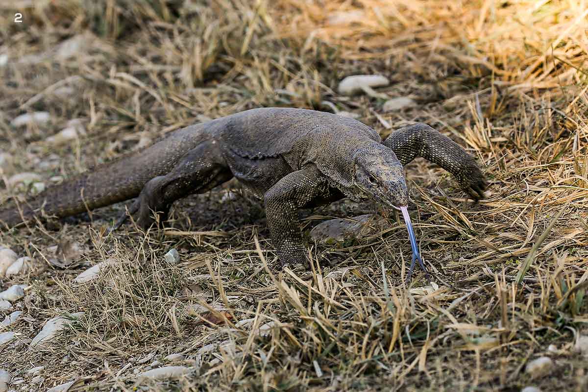 During the breeding season, Bengal monitors may use abandoned termite mounds or dig burrows to obtain suitable temperatures and humidity for their eggs. Digging is also one of the most common ways of obtaining food, and their claws are handy while foraging and hunting. Photos: Akshay Manwani (1), Saurabh Sawant (2)