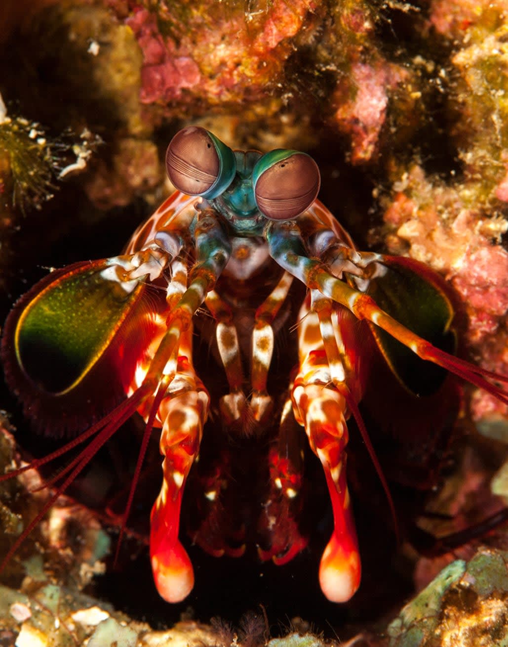 Animals such as the mantis shrimp have evolved to see multiple light spectra within the ocean and are less limited in their ability to see colours. Their colour vision is four times more complex than ours, and they can see 12 channels of colour compared to the three channels (RGB – red, green, blue) through which we see the world.