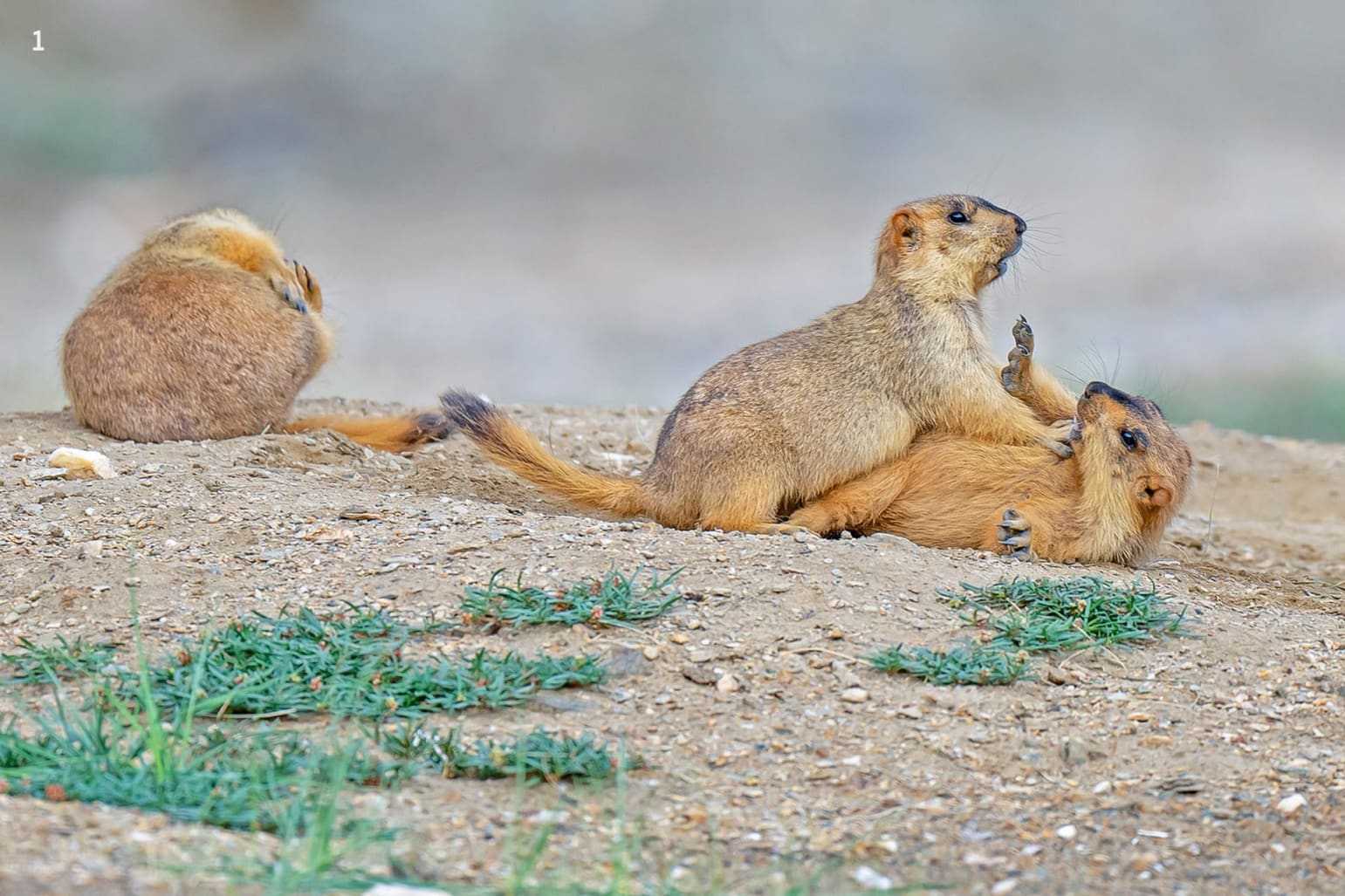 The Hanle marshes and the stretch along the Hanle River offer moist soil and habitats suitable for small burrowing mammals like marmots and pikas. (1) Himalayan marmots (Marmota himalayana), locally called phiya, can often be seen basking (early morning), foraging, or wrestling in their colonies along rivers and roads. Marmot colonies have intricate underground networks of burrows. Just before winter commences, marmots hoard the burrows with vegetation material and reline the burrows for their winter hibernation. (2) Among pikas, locally called zabra, plateau pika (Ochotona curzoniae) and Royle’s pika (Ochotona roylei) occur in Hanle. These are non-burrowing and non-hibernating small mammals living on slopes with rocks, boulders (talus), and existing burrow systems. Pikas are social animals; plateau pikas display both polyandry and polygyny.