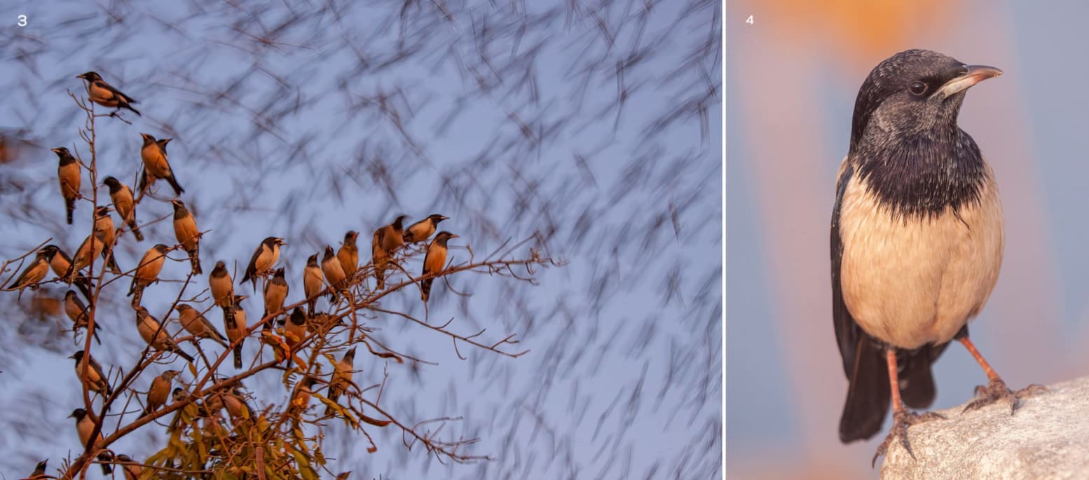 The rosy starling is a migratory bird found in many parts of peninsular India during winter. These birds are known to travel from their breeding grounds in Central and West Asia and Eastern Europe to spend the winter months in the Indian subcontinent. These omnivorous birds spend their time foraging, feeding, and resting in open country and wooded areas, often very close to large human habitations. Their special ability to orchestrate the wondrous act of murmuration (between December and February) for those precious 15-30 minutes during the last light of the day has made this rather common bird an iconic species in many parts of Gujarat and Central India. It is not that these murmurations cannot be seen elsewhere. Ornithologist Anand Krishnan says, “I believe you have the potential to find them (murmurations) anywhere where substantial numbers of rosy starlings winter”.