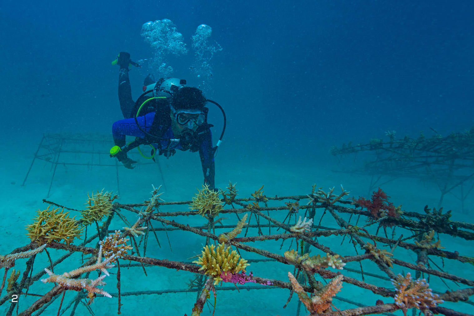 Coral bleaching has been observed in the South Andaman Islands in 2005, 2010, 2016 and more recently in 2024. The bleaching events in 2010 and 2016 and the recovery of the corals were extensively documented. They indicated that the corals are a lot more resilient and are exposed to fewer anthropogenic (human-induced) threats in the national park. Although corals can withstand temporary increases in temperatures by 1-2 degrees Celsius above their tolerance range, prolonged exposure leads to mass bleaching. To assess the health of reef systems, long-term monitoring of coral reefs in the Andaman and Nicobar Islands was initiated in 2021, under the national-level Long-term Ecological Observatories (LTEO) programme. The Andaman and Nicobar Forest Department has also deployed many artificial reefs (that are engineered structures) around Grub and Tarmugli Islands. Fragments of broken corals are tethered to these structures, providing them with a new substrate on which to grow and ultimately mimic natural reefs and their functions.