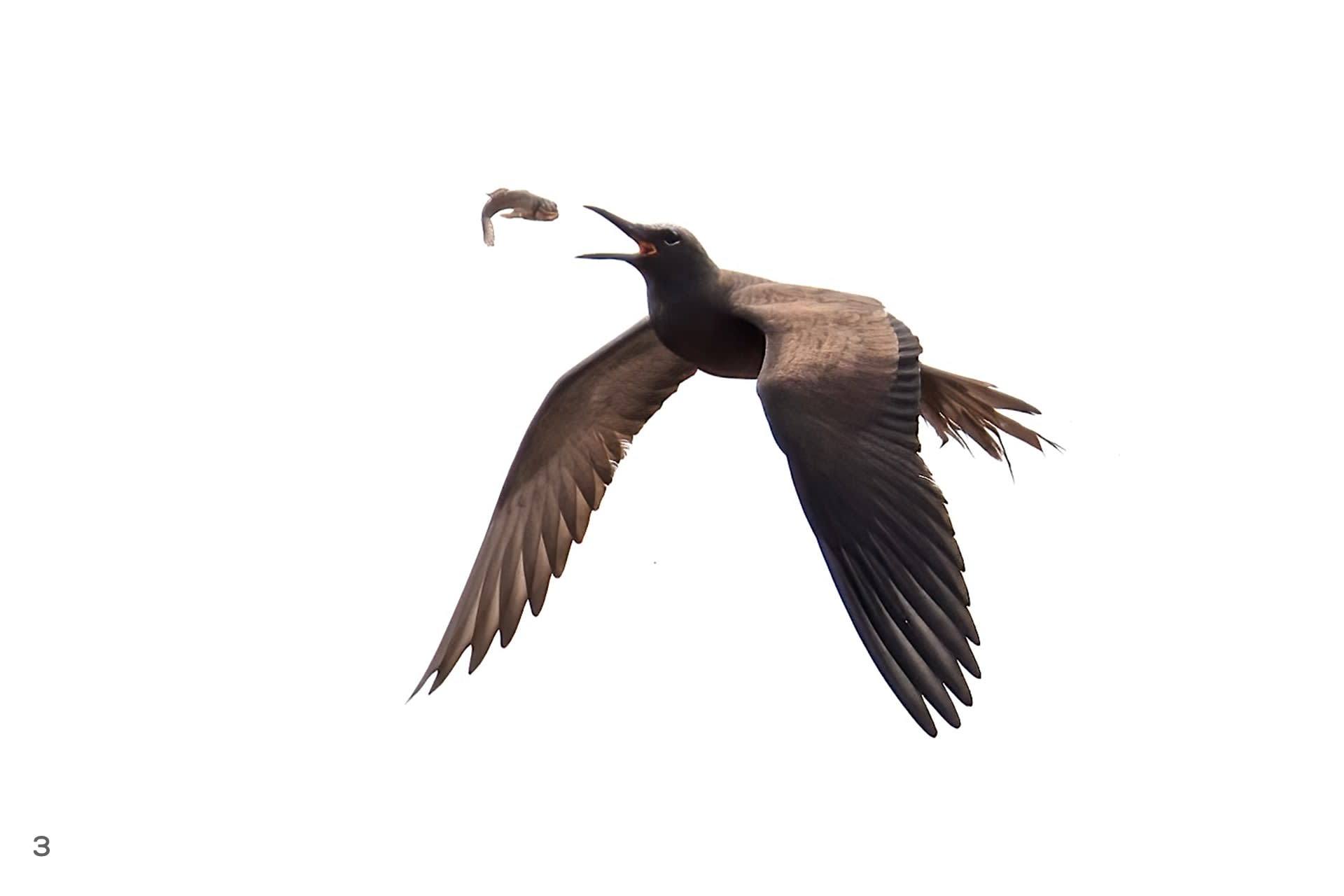 On catching the prey, the noddy devoured the mudskipper instantly, occasionally subduing it with the pointed beak to ensure it didn’t escape. We also observed that on the odd occasion, a noddy carried a mudskipper into the air. On a few occasions, the noddy even flung the mudskipper high into the air to catch it again and swallow it. This might have been because its grip on the prey was tenuous, and it tossed it in the air to reposition it, catch it again, and then gobble it.