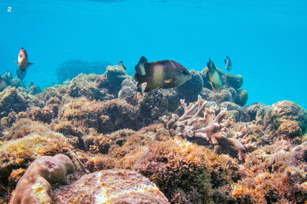 In the bustling reef, it takes only a few minutes to spot damselfish hovering over their small territories, swimming back and forth as they weed out undesirable algae, discarding them outside their “gardens”. Observe them for a few more minutes, and you will see them intimidate or chase away other (sometimes larger) herbivores, and even attempt to intimidate the occasional scuba diver.
