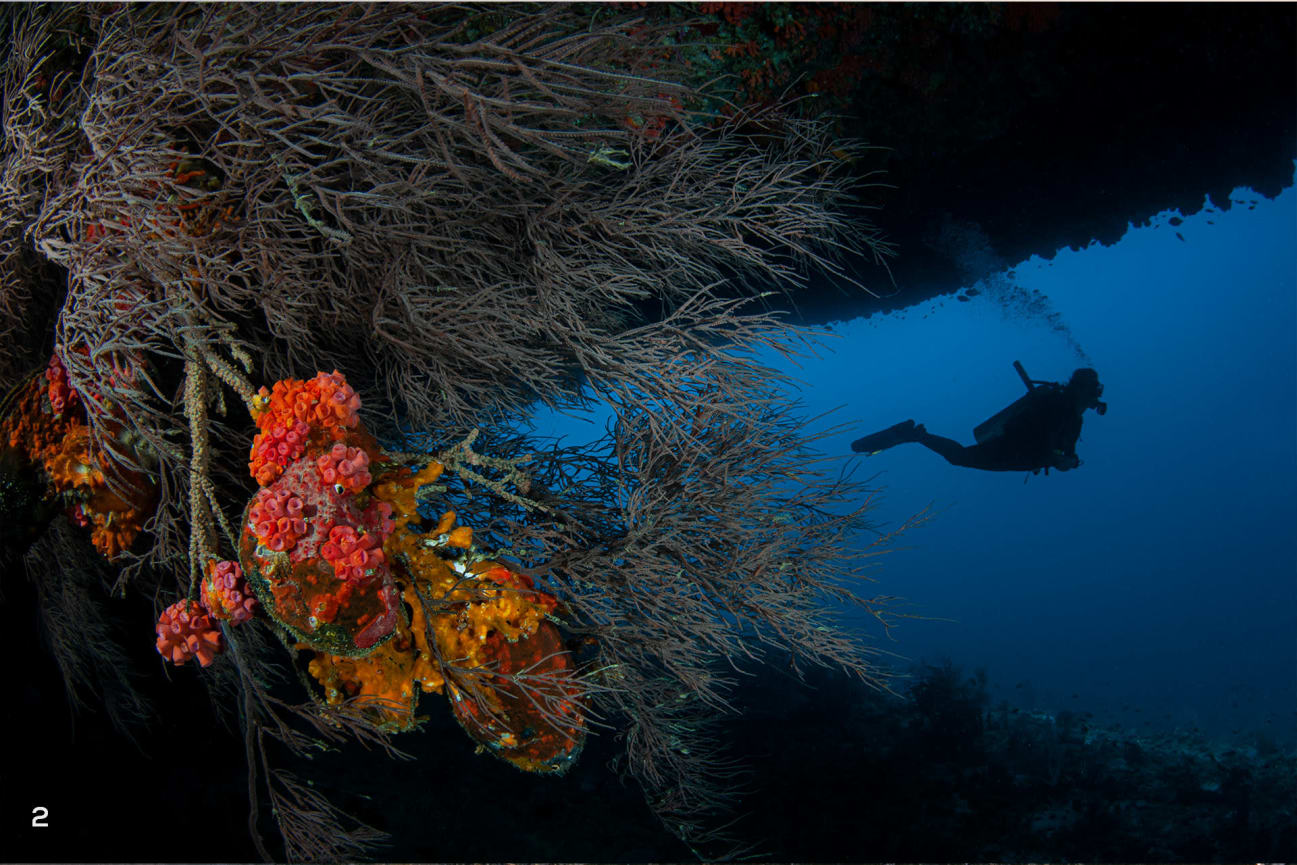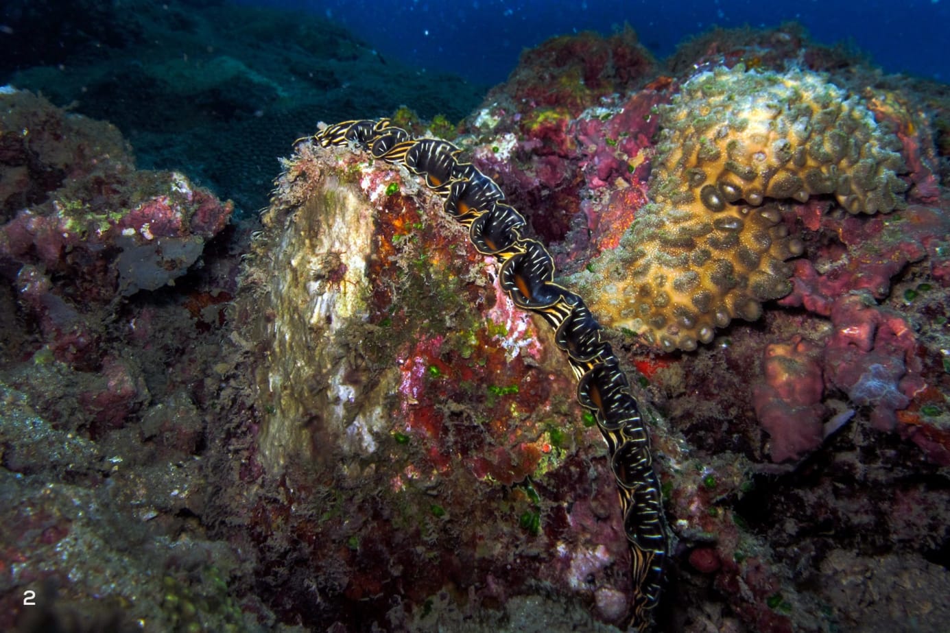Where would we go to find wild oysters? Depending on the species, oysters live in habitats as shallow as the seashore or in reefs 30-40 metres deep. On reefs, you will see them attached to rocks and overhangs and even piggybacking on other animals like soft coral, giving them access to strong currents carrying plankton. Closer to shore, oysters can be seen studded across rocks in tide pools and dense colonies or “oyster reefs” in brackish waters and mangroves.