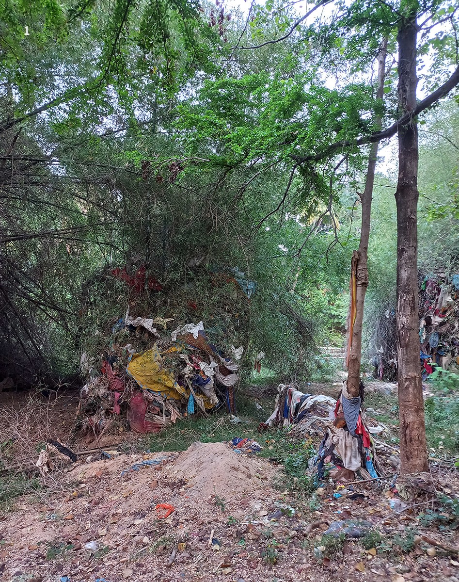 Human dependence and its consequent impact on the river have risen drastically over time, subjecting it to extensive channelisation, sewage, industrial effluents, and agricultural run-off. A section of the river at Papanasam is clogged with discarded clothes — remnants of a religious practice that began about 12 years ago. Measures have been taken to prevent clothes from being thrown directly into the river, but the damage runs deep. Layers of cloth form the river bed (catching your ankles as you wade through), and more hang in the floodplain vegetation strewn with last monsoon’s tattered remains. Besides this, unethical fishing practices such as using bleach or explosives have been reported, and this river, like many other freshwater systems in India, battles an all-pervasive catfish invasion.