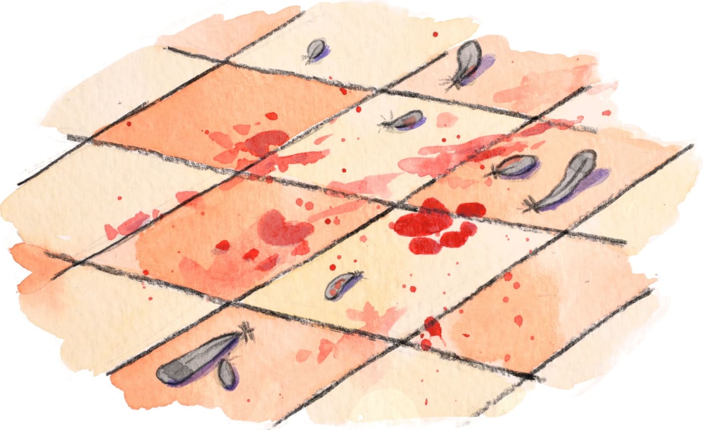 The kids went to the park. I left the house to run some errands. When I came back home, Juni was lying on the terrace next to Rani with a wet towel in her hand. She wiped her paws and picked out tiny feathers from in-between her claws. Pink drops fell to the floor as she squeezed the towel. Horrified, I asked Juni what she was doing. And with a smile on her face, she said, “Papa, the pigeon didn’t fly away. Rani ate her up.”